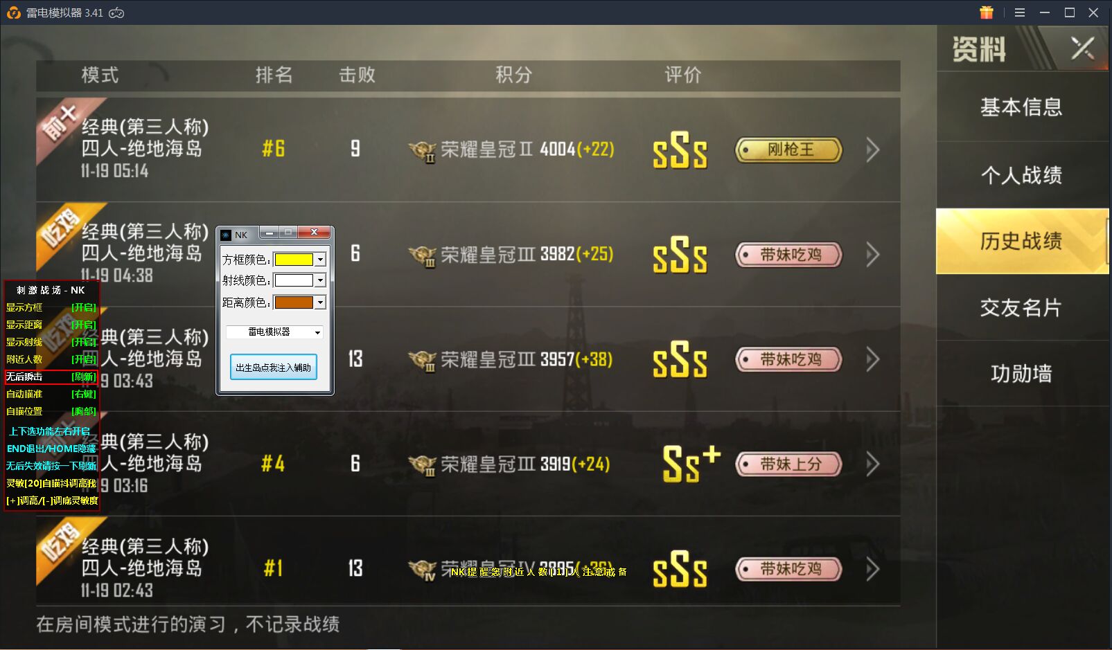 只支持雷电模拟器,可以过检测匹配手机玩家