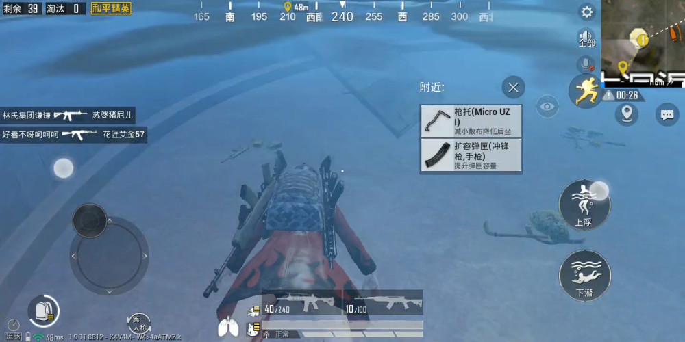 我们落在水里快速把水中的资源搜一遍以后就快速上岸,缺什么资源就先拿什么资源,优先找我们使用的顺手的枪械,然后就是防具,只要有枪有防具就可以在第一波刚枪中拿到优势,我们搜的差不多走地面入口的玩家也就差不多要来了,我们就要利用听声辨位找出那个入口可能来人,然后直接在入口旁边蹲守就可以了,走入口进来的玩家装备大概率会比我们差很多,我们刚枪是很占优势的。